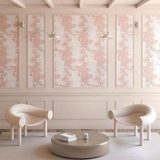 Фотообои. Представляют собой крупноформатное изображение, которое либо наносится на несколько полотен, либо продаётся цельными рулонами. Хотя в 2010-х годах они были на пике популярности для создания акцентных стен, сейчас их востребованность заметно снизилась. Современные тренды сместились в сторону более сдержанных и текстурированных решений, хотя фотообои всё ещё могут использоваться в нишевых проектах или для определённых стилистических задач.