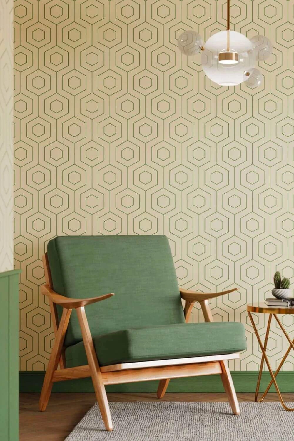 Геометрические принты. Сохраняют актуальность в современных интерьерах, стилях мидсенчури и ар-деко. Вариации разнообразны: от сдержанных нейтральных узоров до смелых контрастных решений с металлизированными элементами. Выбор зависит от желаемого эффекта — можно создать как лаконичный фон, так и выразительный акцент.