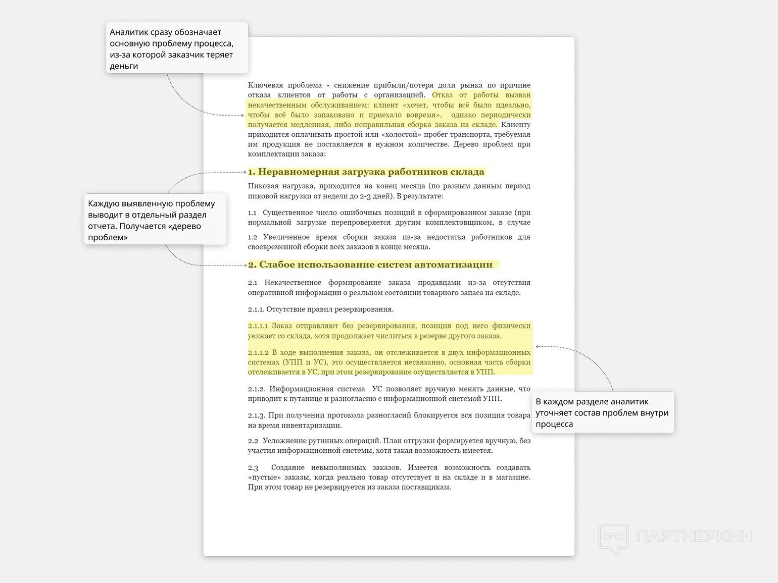 Результат анализа — отчёт с рекомендациями, как улучшить процессы.