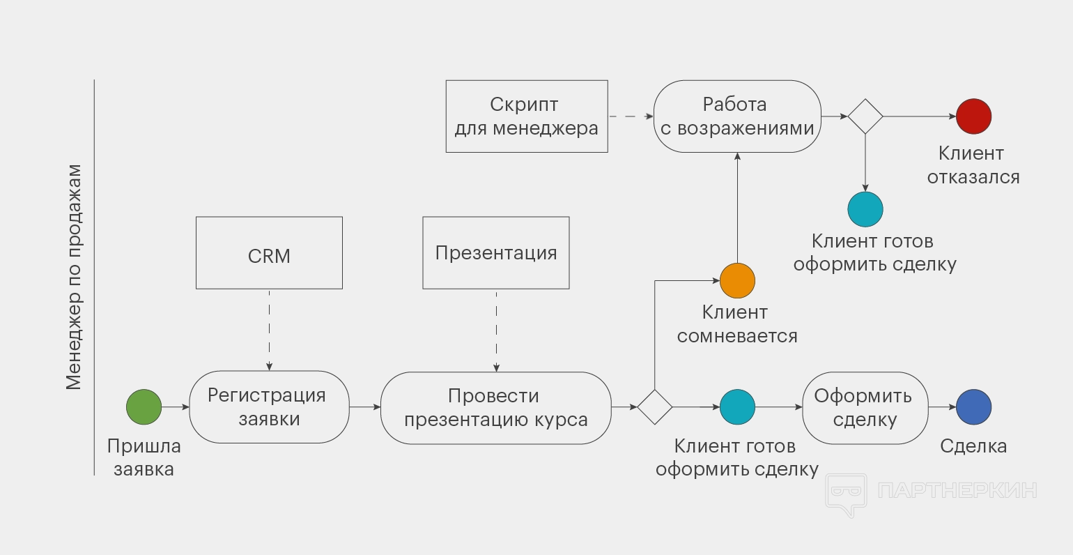 Бизнес-процесс — это любые операции внутри компании, которые помогают решать бизнес-задачи и зарабатывать. Например, работа менеджера по продажам с клиентом, поставка товара, подписание договоров, запуск рекламы и так далее. По сути, это инструкции: кто, что, когда и как должен делать.