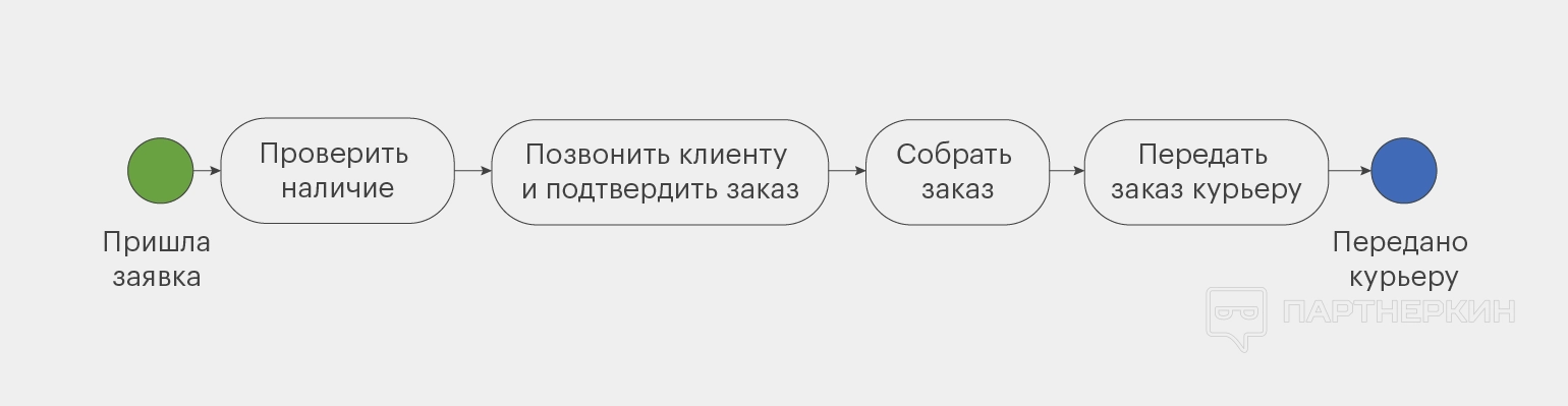 Допустим, один из бизнес-процессов в интернет-магазине игрушек — обработка заказа. В упрощённом виде он выглядит так: