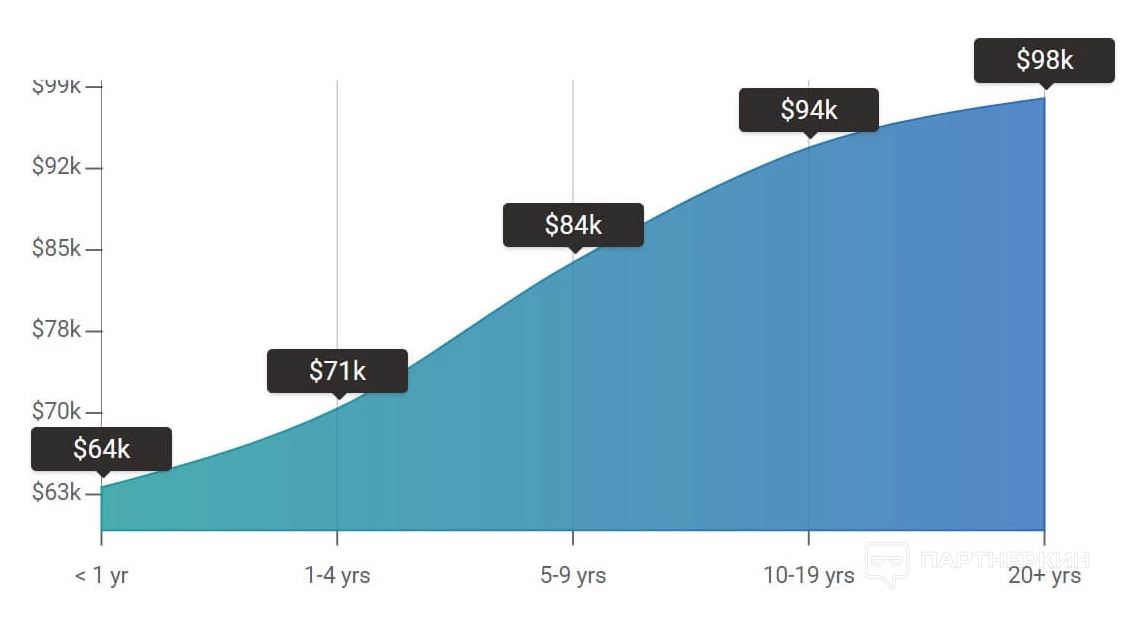 В западных странах заработок более чем впечатляющий. В США, например, средняя ЗП малоопытного специалиста составляет $88 000 в год. В Европе доход выглядит следующим образом: