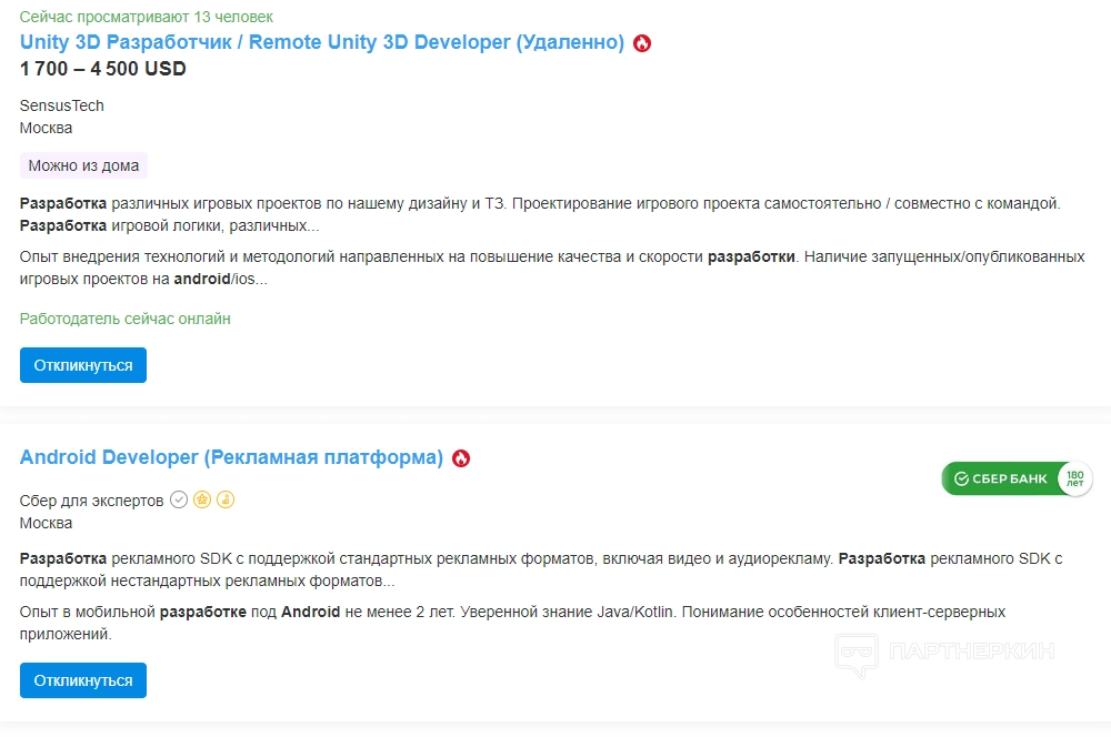 Для поиска работы в РФ можно воспользоваться сервисом hh.ru. Там регулярно размещаются перспективные и высокооплачиваемые вакансии по всей территории России. На момент написания статьи на сайте было более 2 200 предложений с разным доходом.