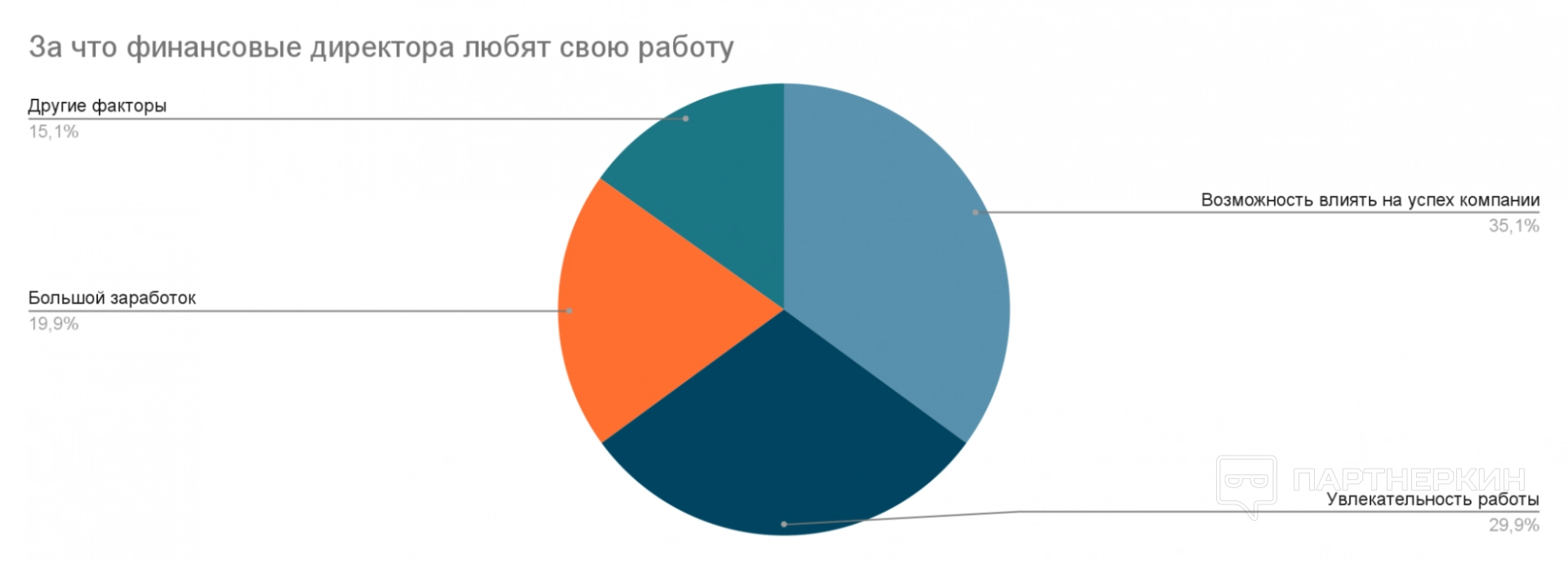 Согласно исследованию компании PwC, 88% коммерческих директоров любят свою профессию за возможность влиять на успех компании, а 75% считают, что их работа является увлекательной и интересной. Однако, 60% также признают, что работа финансового управляющего может быть очень стрессовой.