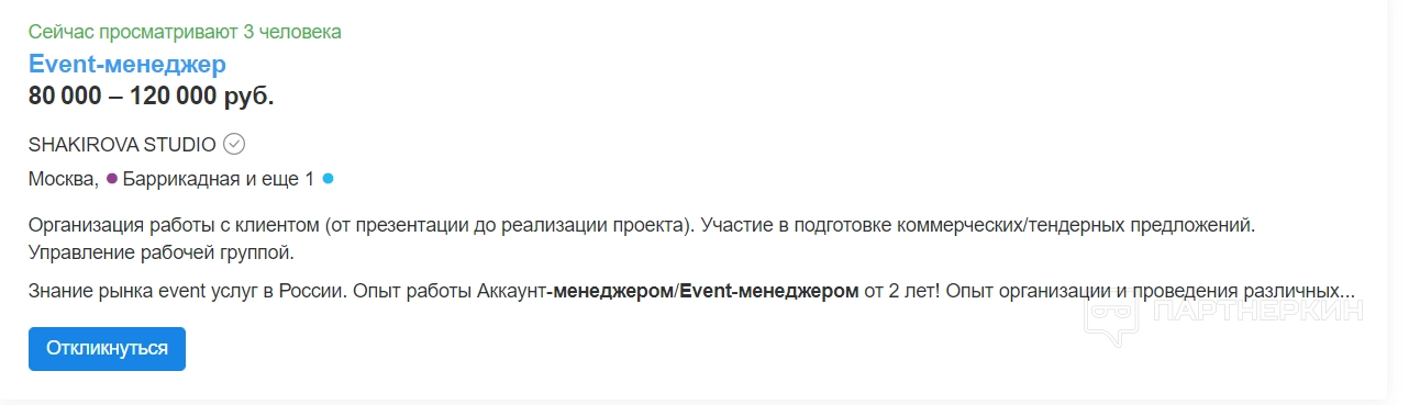 Часто требуют наличие опыта, поэтому новичкам довольно сложно находить первых клиентов. В таких случаях лучше устраиваться в агентства или работать в паре с более опытным организатором.