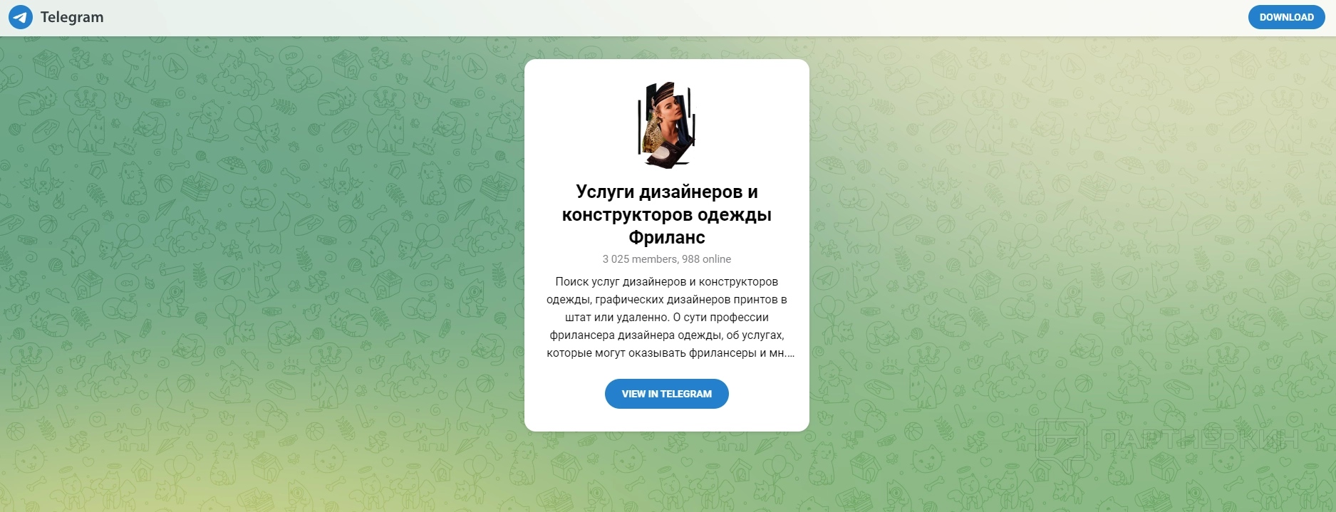В Telegram много похожих каналов по поиску работы. Чтобы найти подходящие паблики, необходимо в поисковой строке указать «дизайн», «одежда» и другие ключевые слова.