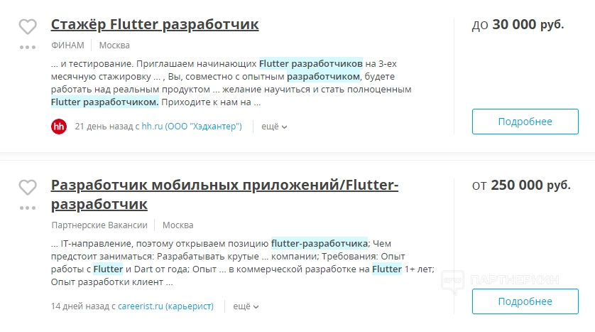 Заработки у Flutter-разработчиков зависят от опыта и страны, в которой они работают. По данным сервиса Zarplan, средний заработок опытных специалистов в РФ достигает 202 000 руб/месяц. Общий диапазон — от 101 000 до 391 000 руб/месяц. Наибольшее количество предложений в неделю размещают в Москве, Санкт-Петербурге и Екатеринбурге.