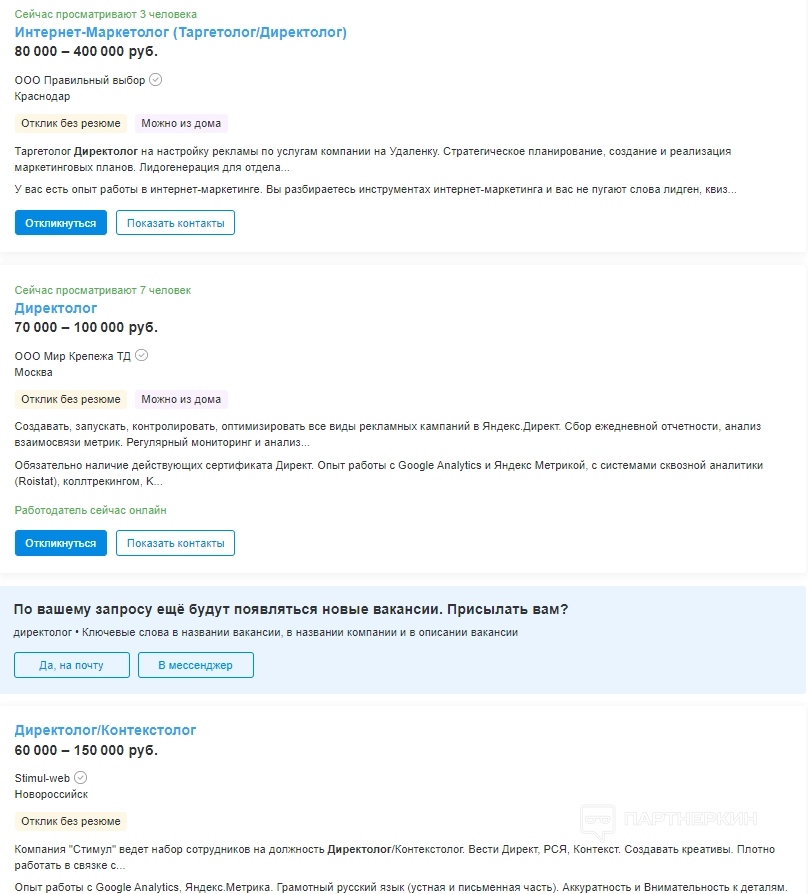 Еще вариант — воспользоваться сервисом hh.ru. На момент написания статьи ресурс предлагал чуть больше 200 вакансий со средней зарплатой 80 000 рублей в месяц. Самые выгодные условия предлагали в Москве, Краснодаре и Новосибирске.