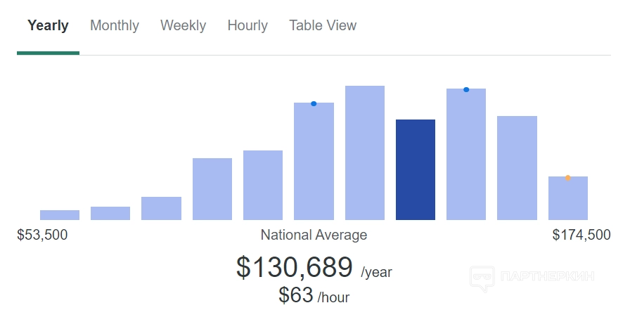За рубежом, по статистике ZipRecruiter, зарплата разработчика составляет 130 689 USD в год. С вакансиями ситуация схожая — давайте проверим.