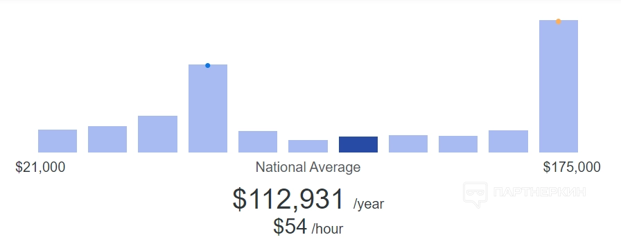 По данным сайта ZipRecruiter, крипто-трейдер в США может зарабатывать в среднем 112 тысяч USD в год. Сравним это с данными из вакансий по США.