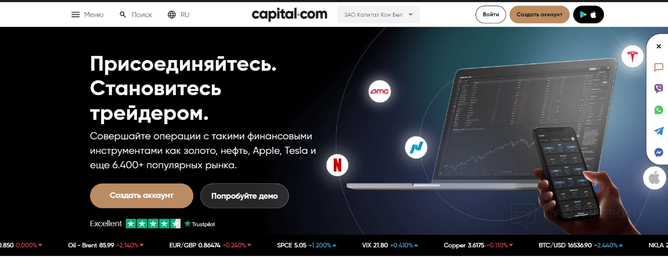 Capital.com — молодая биржа, на которой можно помимо торговли следить за новостями финансового рынка, а также в случае проблемы быстро получить ответ от поддержки. На платформе небольшой порог входа, поэтому подойдет не только экспертам, но и новичкам.