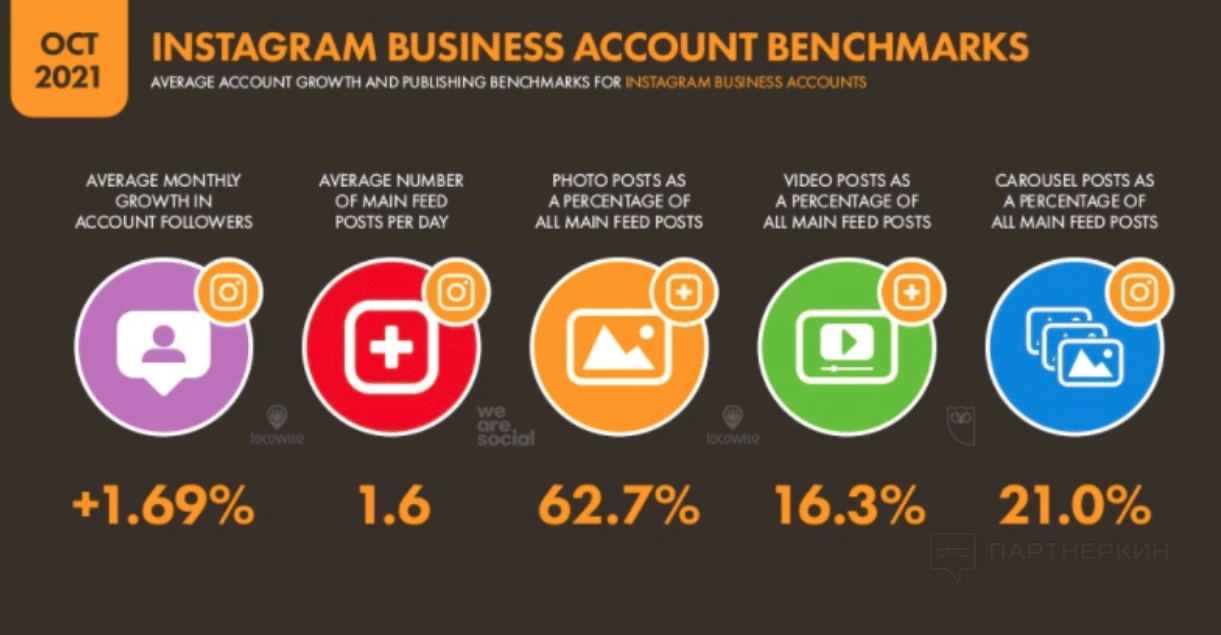 Как показывает статистика блога hootsuite, Инстаграм* является 4-й по популярности социальной сетью во всем мире, и ее ежедневно посещает свыше 1,22 млрд. человек. А еще в блоге говорится о том, что средний бизнес-аккаунт ежемесячно увеличивает количество подписчиков на 1,69%.