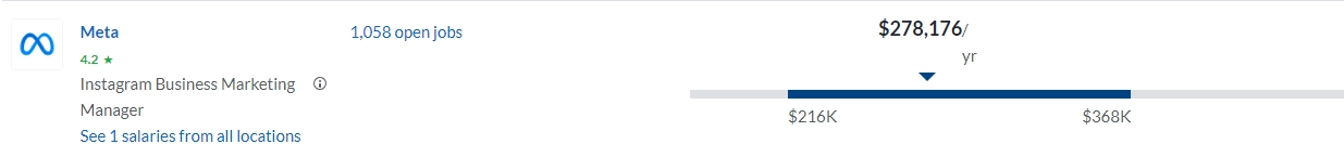 Больше всего Instagram*-менеджеры зарабатывают в США. По данным портала glassdoor, заработки на американском рынке составляют от $48 000 до $126 000 в год. Однако это не предел. Например, в компании Meta* средний годовой заработок — $278 176.