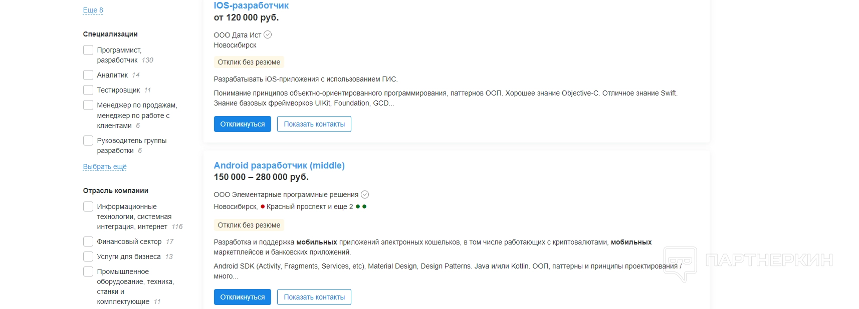 Разработчик мобильных приложений может найти вакансии на следующих сайтах: