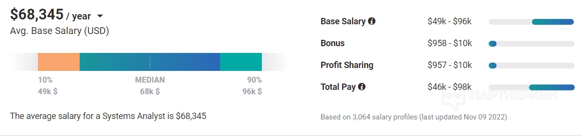 В среднем, специалист по системной аналитике может зарабатывать за рубежом от 68 тысяч USD в год, по данным сайта PayScale. Зарплата за рубежом значительно отличается от российской — давайте разберем, насколько, на примере показателей в вакансиях на Indeed.com: