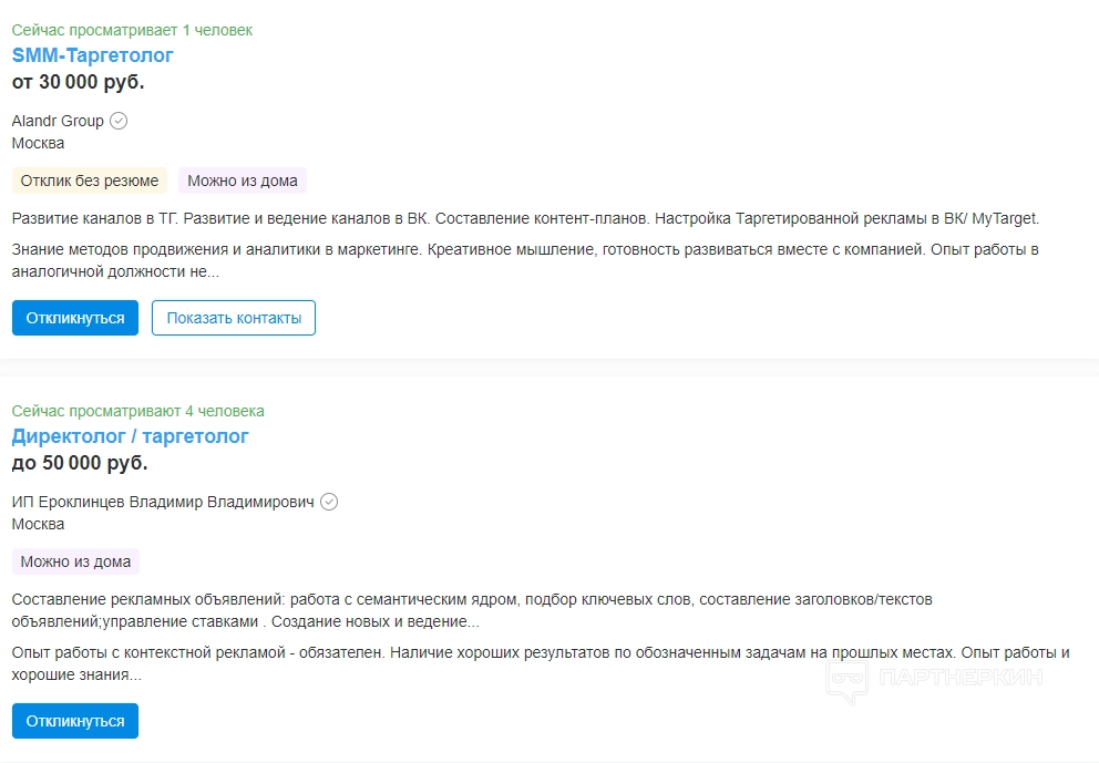 Не стоит забывать о социальных сетях и мессенджерах. Там тоже можно разместить свои услуги или воспользоваться пабликами и каналами, в которых регулярно выкладываются вакансии. Вот несколько примеров: