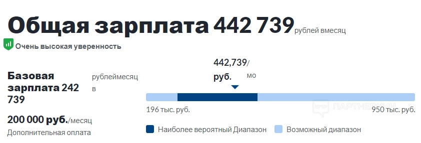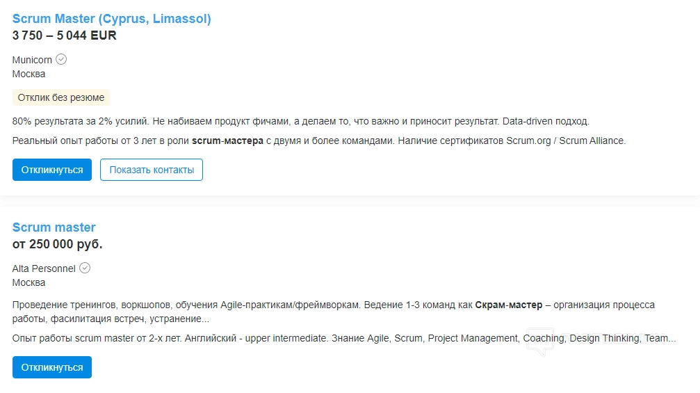 Сервис Glassdoor демонстрирует немного другие данные. По его версии средняя заработная плата Scrum специалиста доходит до 442 739 руб/месяц. А общий диапазон составляет от 196 000 до 950 000 руб/месяц.