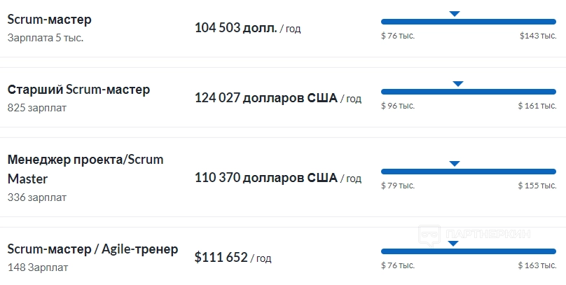 За рубежом зарплаты Scrum-мастеров выглядят следующим образом: