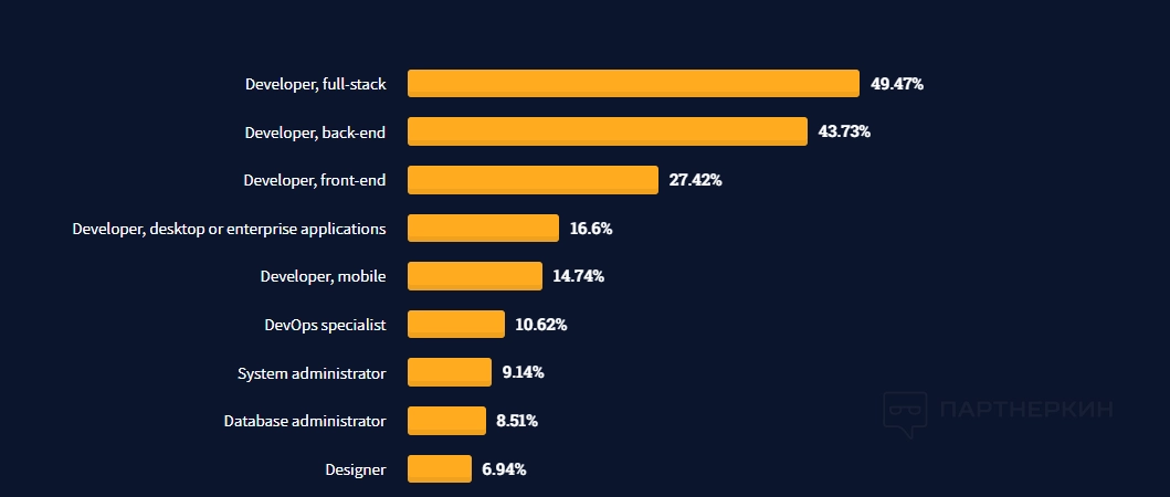 Это универсальный специалист, следящий за теми же процессами, что Frontend и Backend-разработчик. Он умеет выполнять все задачи, включая разработку сайта, проектирование архитектуры и администрирование. Однако выполняет это медленнее, чем другие специалисты. |