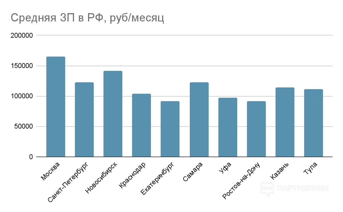 Если верить данным сайта Zarplan.com, средняя заработная плата веб-разработчика в России колеблется в пределах 115 676 рублей в месяц. Самые большие ЗП получают специалисты, работающие в ведущих регионах РФ. Вот яркий пример: