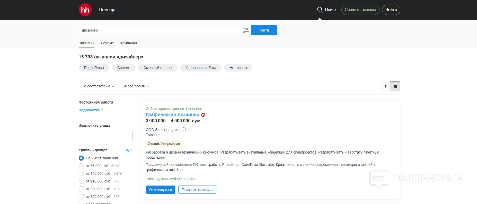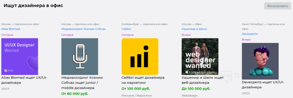 В группах и телеграм-каналах встречаются вакансии для веб-дизайнеров. Обычно требуются специалисты для удаленной работы, но иногда встречаются предложения для штатных сотрудников.