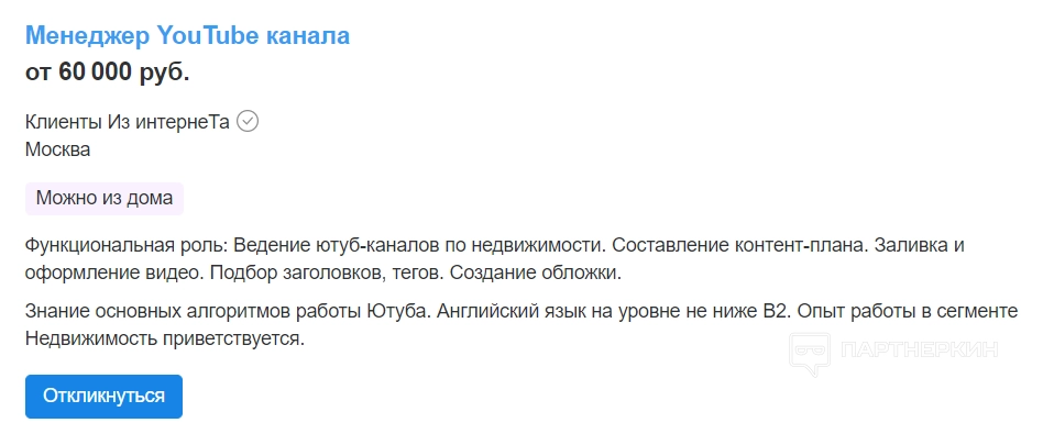 Заработок менеджера упирается в список его должностных обязанностей — например, если заниматься только продвижением, можно получать меньше специалистов, которые также ведут канал, дизайнят и монтируют ролики и закупают рекламу.