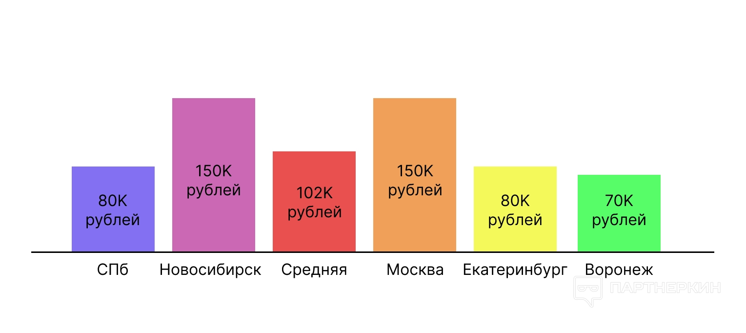 В среднем, по данным сайта Zarplan, менеджер по закупкам может получать 102 тысячи рублей в месяц. Сравним этот показатель с данными по зарплатам в городах России — всю информацию брали из вакансий на hh.ru.