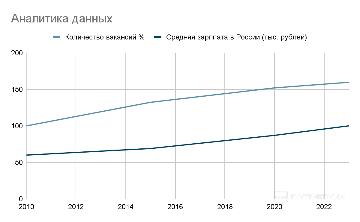По данным LinkedIn, специалисты в области аналитики информации занимают первое место в списке наиболее востребованных профессий в 2025 году. В России количество вакансий в этой сфере выросло на 40% за последний год, а средняя зарплата аналитика составляет около 100 000 рублей в месяц.