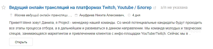 Если же выбран второй вариант, то блогеру придется размещать резюме или искать вакансии для специалистов по ведению корпоративных блогов на специализированных площадках. Один из лучших вариантов — мониторинг сервиса hh.ru. На момент написания статьи на сайте было опубликовано свыше 1 900 предложений с заработком от 65 000 до 290 000 рублей в месяц. Большая часть вакансий просматривалась в Москве и Санкт-Петербурге.