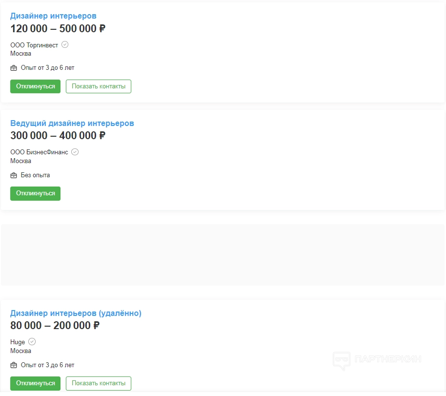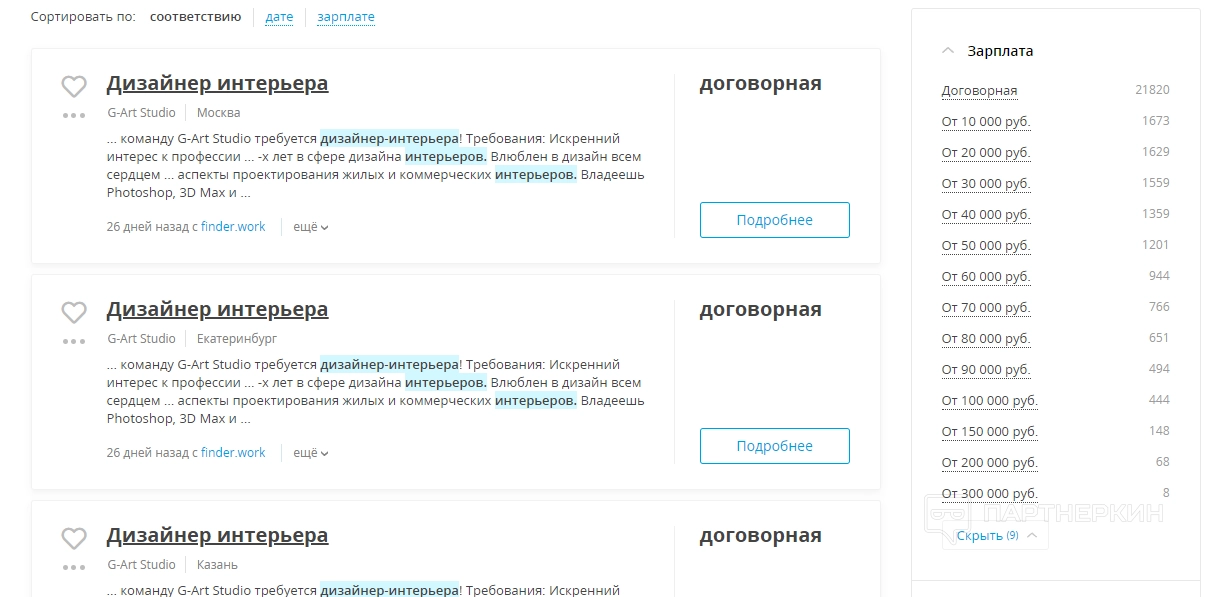 Также для поиска работы дизайнера интерьера можно использовать следующие площадки вакансий: