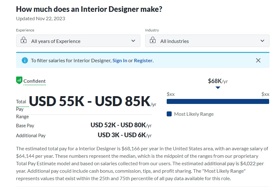 Дизайнеры интерьера, которые работают за рубежом, зарабатывают на порядок больше. Согласно данным сервиса Glassdoor, в среднем по США опытные специалисты получают от $55 000 до $85 000 в год. Однако есть и более выгодные предложения. Например, в компании Airbnb дизайнеры зарабатывают до $146 000 в год.