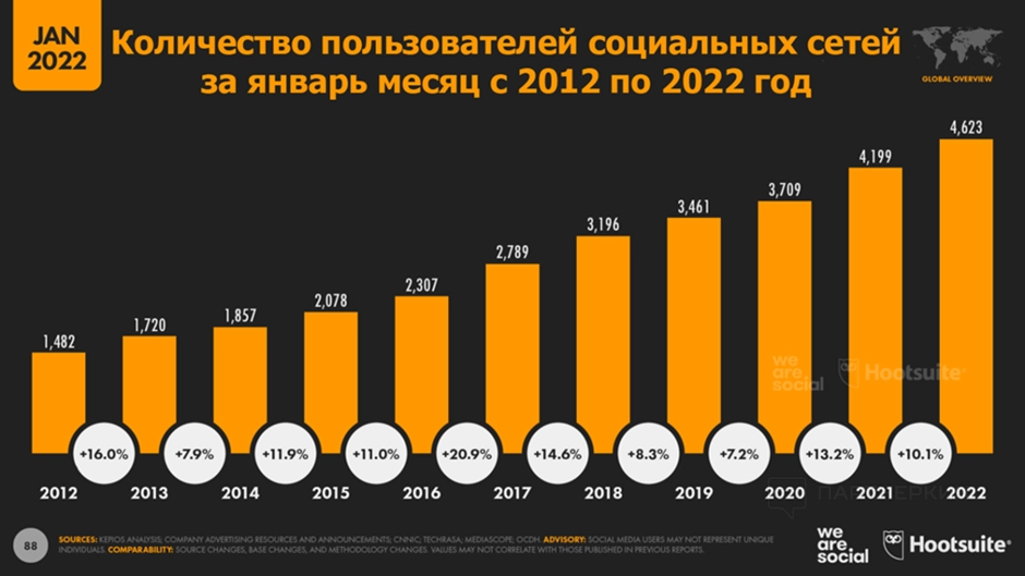 Людям проще общаться с помощью портативных устройств. С 2012 года количество пользователей социальных сетей выросло почти в 3,1 раза (с 1 480 000 000 до 4 620 000 000 пользователей). Это произошло, только благодаря мобильным устройствам.