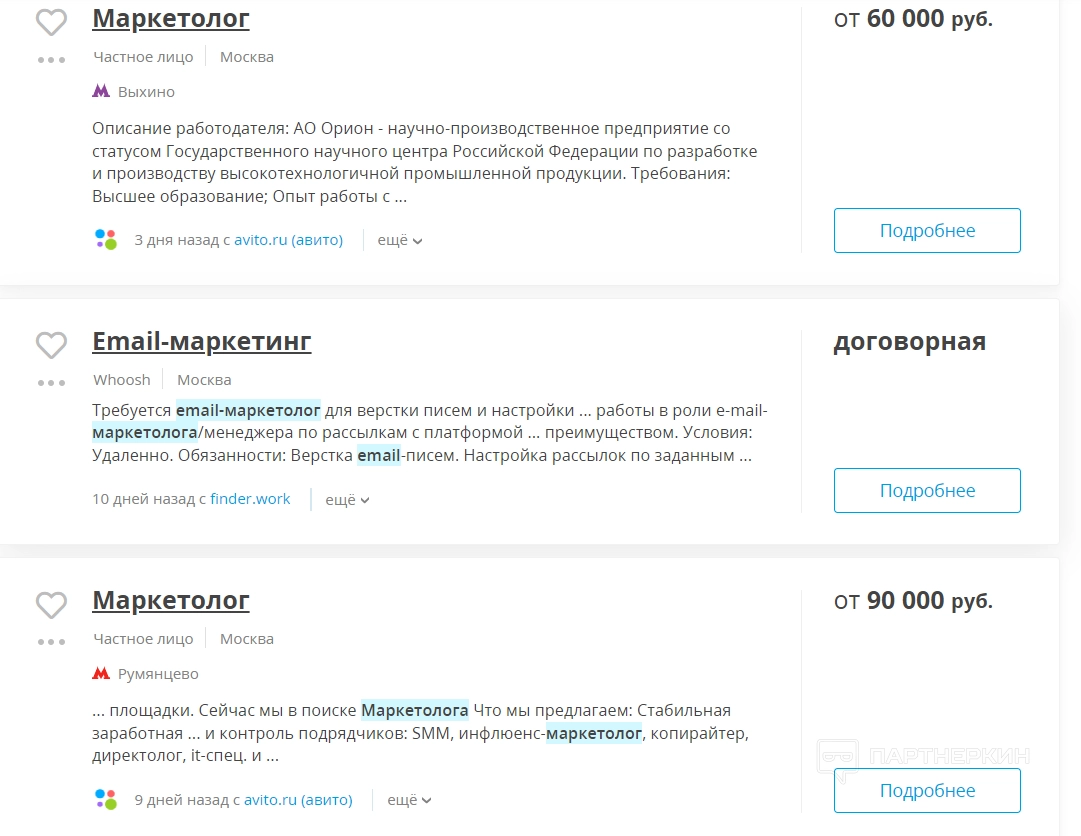 Найти работу по специальности Email-маркетолог можно на следующих площадках: