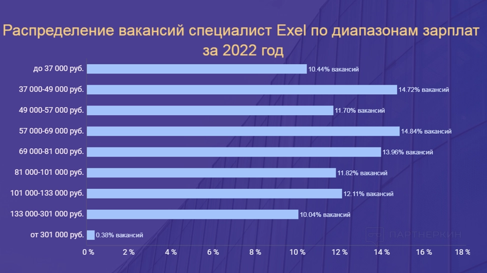 Среди вакансий большая доля вероятностей приходится на определенные специальности. Это профессии, где знание Excel является одним из основных навыков.