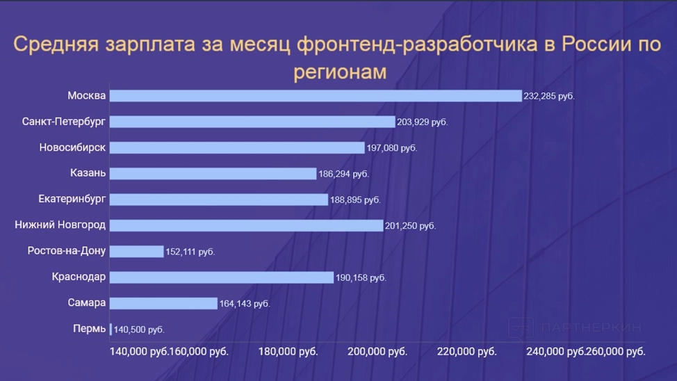 Самый высокий оклад получают в Москве. Средняя зарплата новичка находится в пределе 100 000 рублей в месяц и выше. В Санкт-Петербурге этот показатель ниже — 90 000 рублей в месяц. Дальше рейтинг разделили между собой регионы.