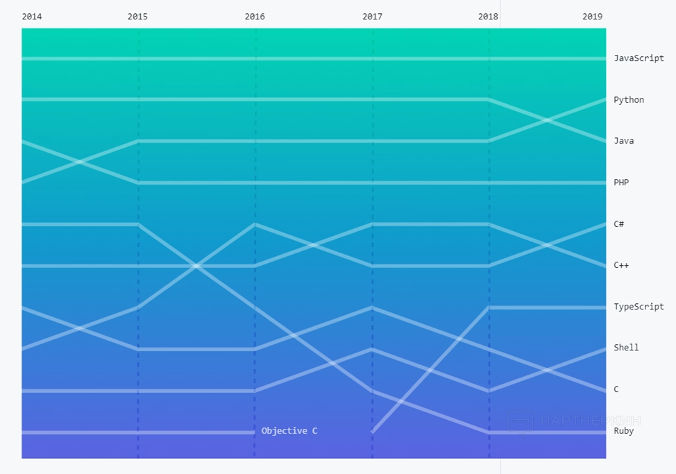 Даже получив работу, хороший оклад и опыт, фронтенд-специалист может развиваться, так как интерфейсы с каждым годом становятся сложнее, а владельцы компаний будут нуждаться в профессионалах. Например, популярность языков программирования растет, а JavaScript никогда не утрачивал своей стабильности.