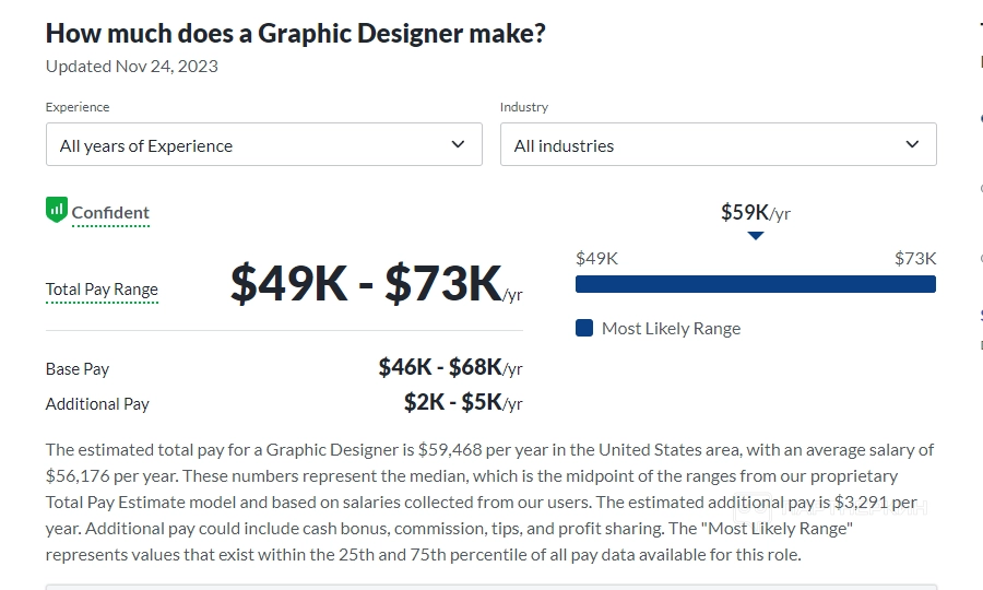 Больше всего графические дизайнеры зарабатывают в США. Как показывает сервис Glassdoor, в среднем специалисты зарабатывают от $49 000 до $73 000 в год. Самые же высокие ЗП предлагают в компаниях Nvidia и Cisco: $123 600 и $122 200 в год соответственно.