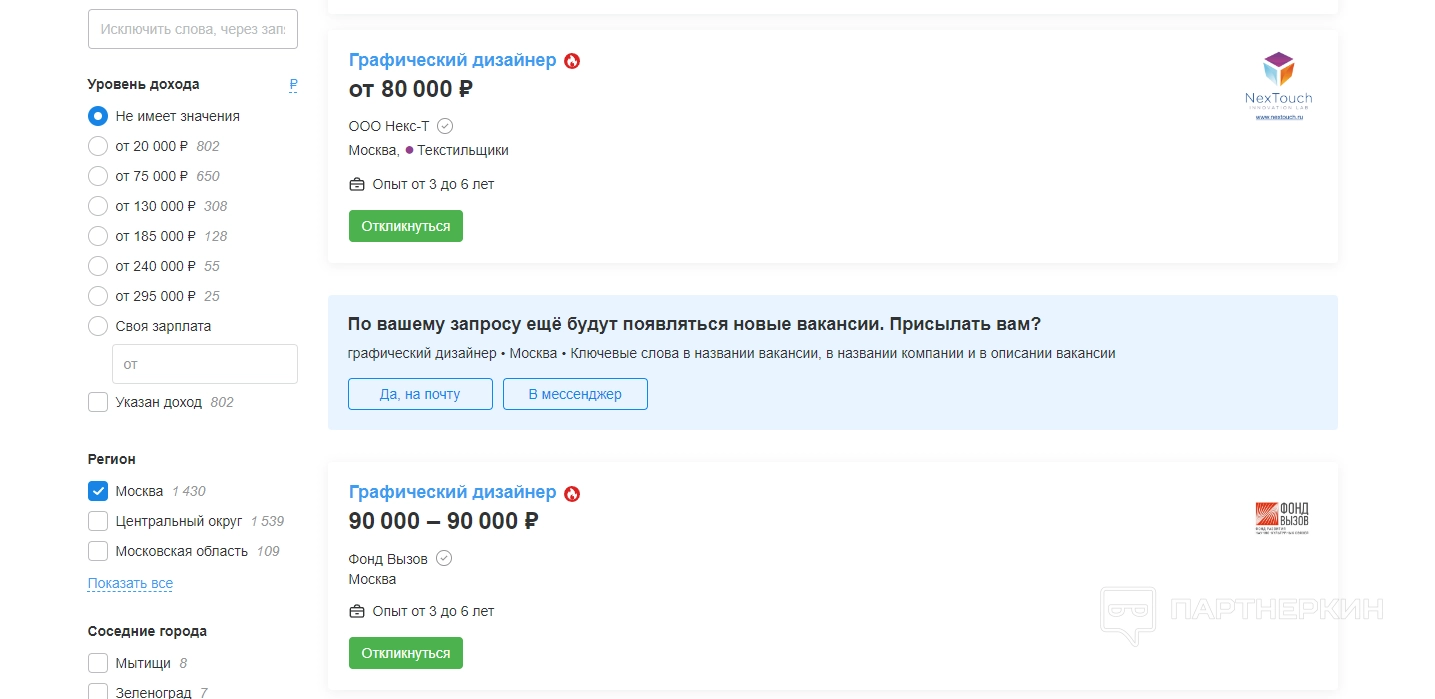 Еще один эффективный вариант — поиск вакансий на сайте Gorod Rabot. Здесь было более 26 000 вакансий с ежемесячной зарплатой от 10 000 до 300 000 руб./месяц.