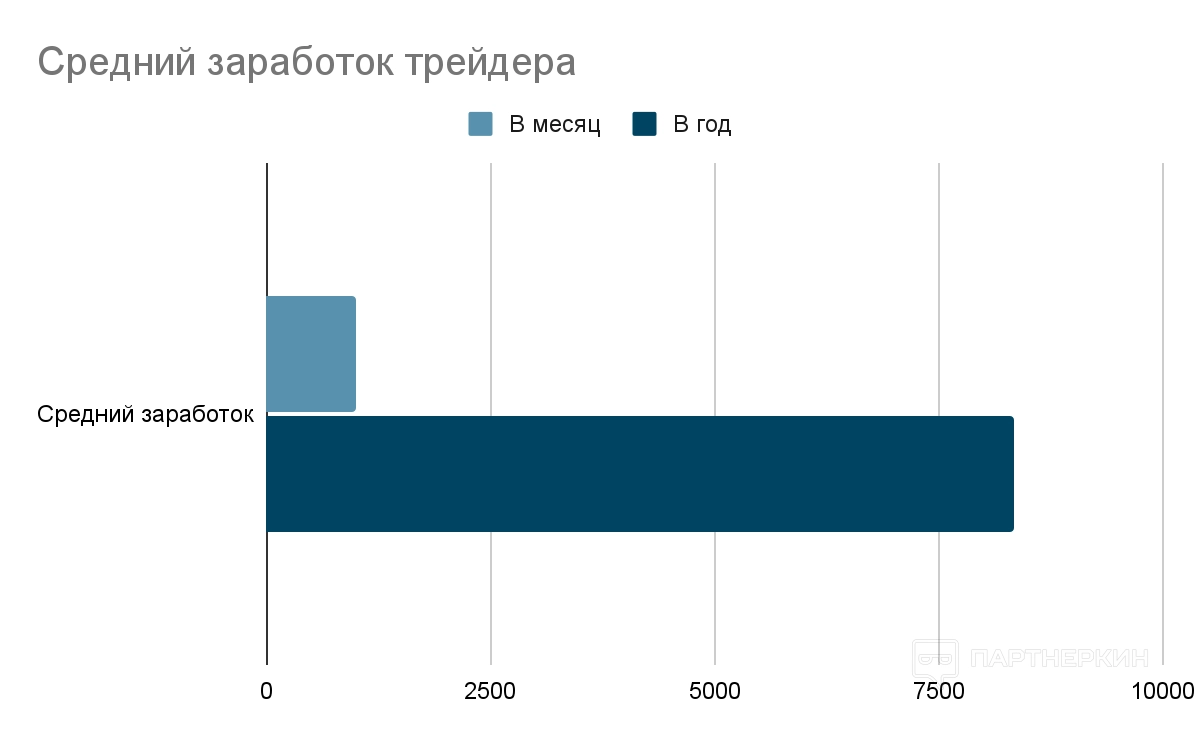 Занимаясь трейдингом, вы можете зарабатывать гораздо больше, чем на обычной работе. Согласно исследованию, проведенному компанией Forex Bonuses, 80% трейдеров зарабатывают более $1 000 в месяц, а 25% из них зарабатывают более $10 000 в месяц. Кроме того, средний доход трейдера на фондовом рынке составляет около $100 000 в год.