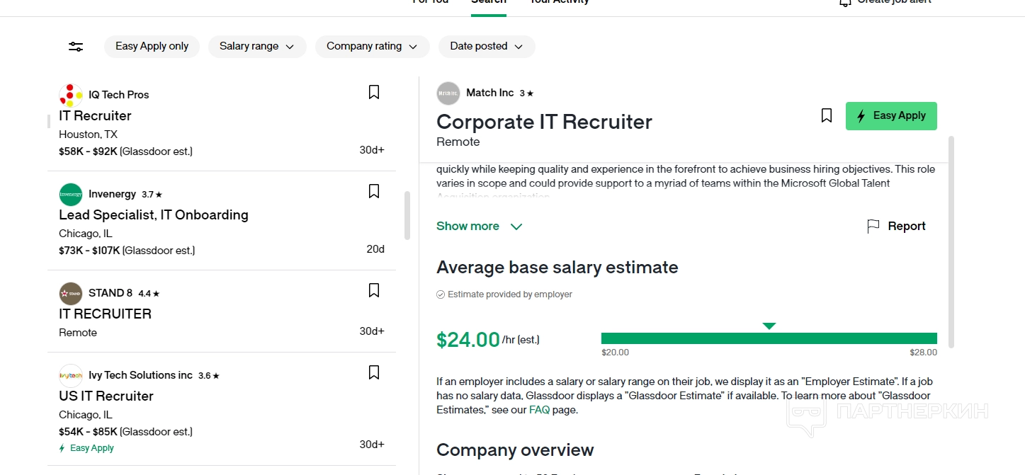 Для поиска работы за рубежом рекомендуется использовать сервис вакансий GlassDoor. На момент написания статьи здесь было 130 вакансий по США со средней ЗП $24 в час. Зарплата в некоторых компаниях была указана до 107 000 в год.