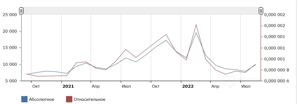 Начиная с 2025 года спрос на настройку директа значительно вырос. В начале 2025 года наблюдается максимальное значение запросов (19 631 шт.), но потом происходит резкий спад. Однако в середине года снова появилось востребованность в специалистах по контекстной рекламе.
