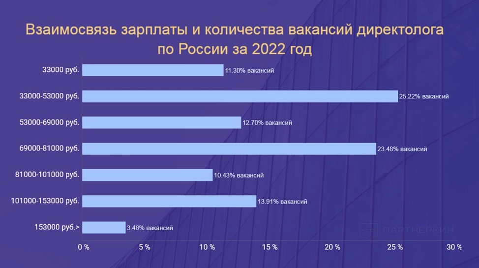 Распределение вакансий дает приблизительную оценку минимального и максимального оклада для вакансии директолог.
