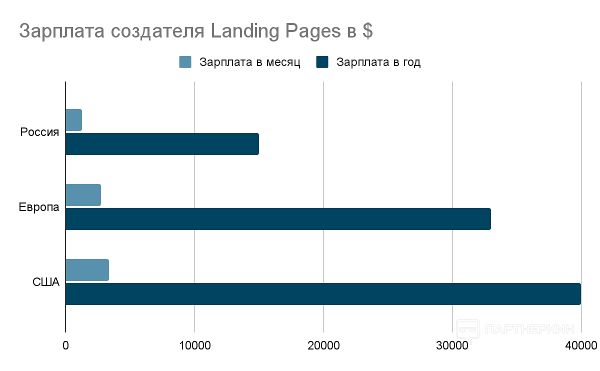 В США средняя зарплата создателя Landing Page составляет от $40 000 до $80 000 в год. В Европе зарплата может достигать от €30 000 до €60 000 в год. Однако эти цифры могут изменяться в зависимости от опыта и уровня квалификации специалиста.