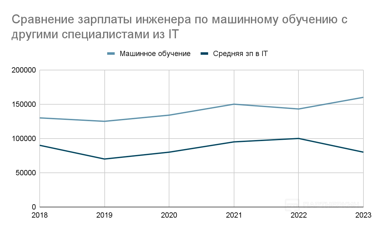 Профессия специалиста по машинному обучению является одной из самых востребованных и высокооплачиваемых в IT-отрасли. Согласно данным портала SuperJob, средняя зарплата такого специалиста в России составляет около 150 000 рублей в месяц. Однако, в Москве и Санкт-Петербурге зарплаты могут достигать 200 000-300 000 рублей в месяц.