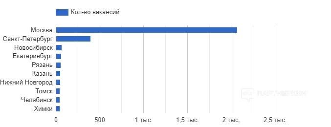 Новичку, который только закончил обучение, можно приступать к поиску на hh.ru. На момент написания статьи по всей РФ предлагали свыше 2 500 вакансий. Наиболее выгодные предложения были в Москве и МО.
