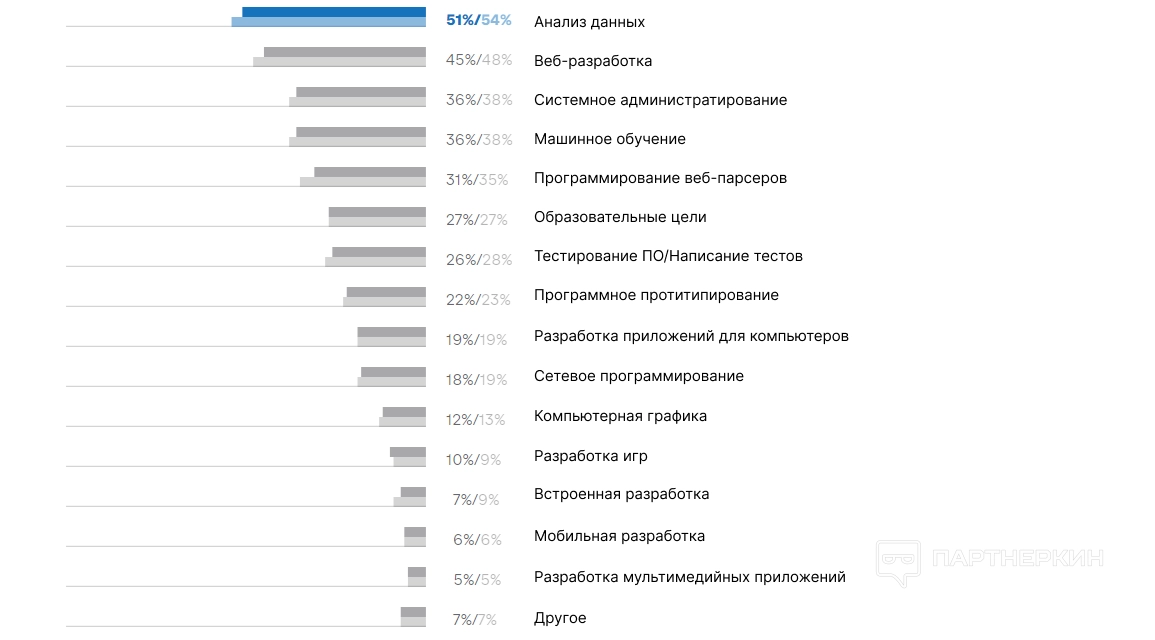 Также задачи могут отличаться в зависимости от специализации разработчика, поэтому важно определиться сразу, в какую сферу хочется идти, чтобы знать, что изучать. Вот самые популярные сферы среди разработчиков на 2025 год: