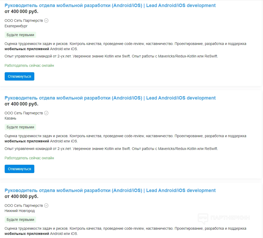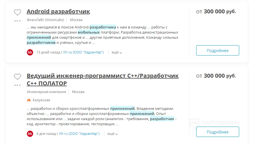Если стоит задача найти работу в границах РФ, тогда можно смело мониторить сервис hh.ru. На момент написания статьи там было опубликовано свыше 3 000 предложений со средней ЗП 200 000 в месяц. В некоторых компаниях опытным специалистам обещали даже более 400 000 руб/месяц.