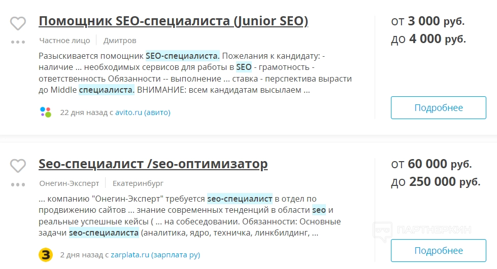 Вот несколько мест, где SEO-специалист может находить вакансии и предложения о работе: