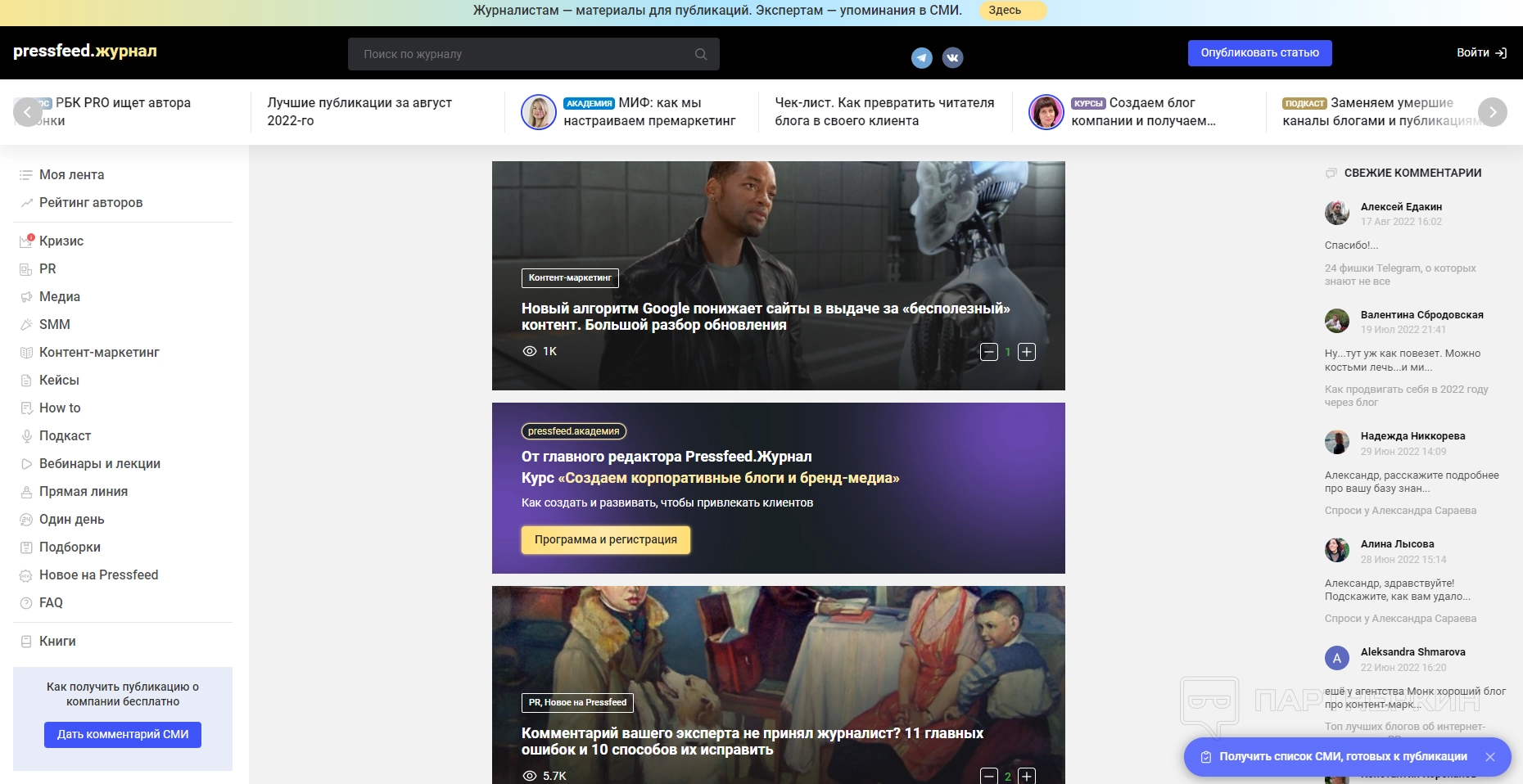 Если у пользователя не было клиентов, но есть экспертиза, необходимо писать статьи в специализированные медиа с открытой лентой: