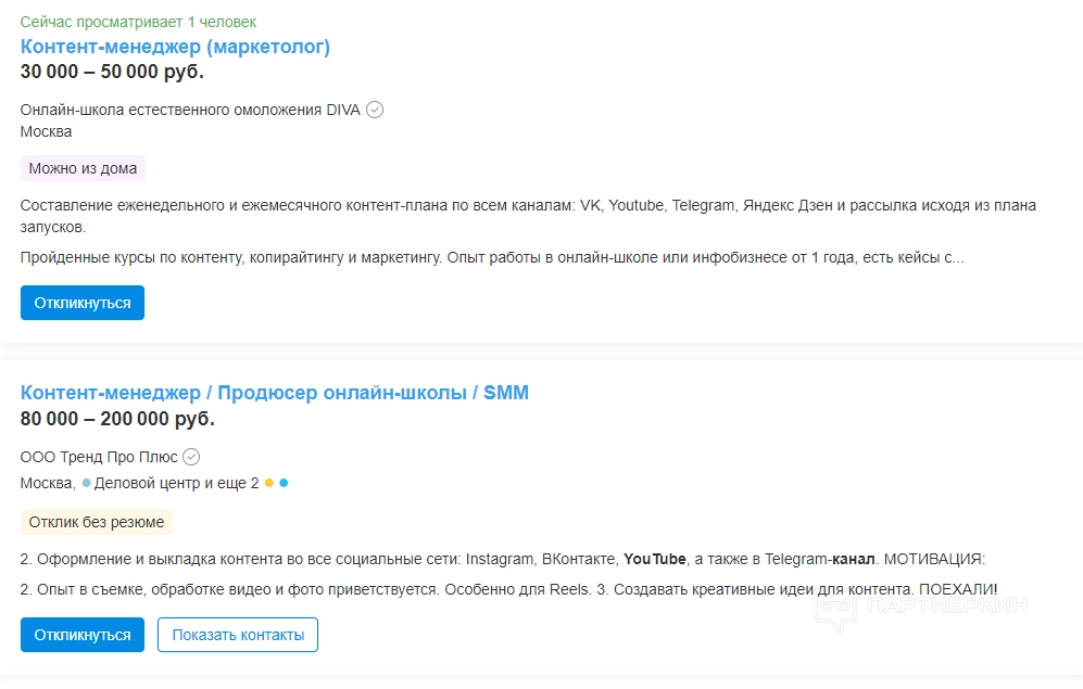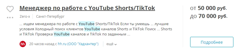 В РФ есть много интернет-площадок, где можно найти работу YouTube-менеджера. Для начала можно посетить hh.ru. На момент написания статьи на сайте было размещено 184 вакансии по всей России. Большую часть предлагали специалистам в Москве. Средняя ЗП по Москве — 80 000 рублей в месяц.